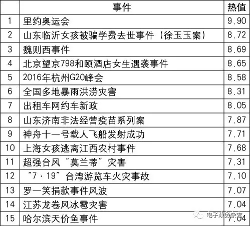 注:根據(jù)新聞網(wǎng)站、報刊對事件的報道數(shù)以及微博、微信、論壇博客等平臺的討論量,對600多起輿情案例分析,綜合權(quán)重計算得出排名前15的事件。