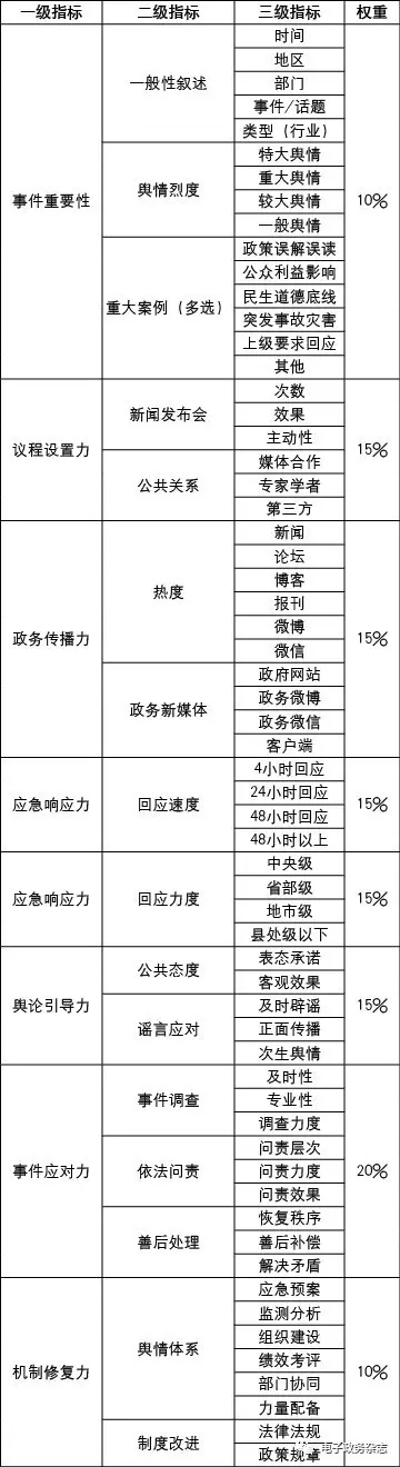 ?。ㄒ唬┱?wù)輿情回應(yīng)指數(shù)評估指標(biāo)體系