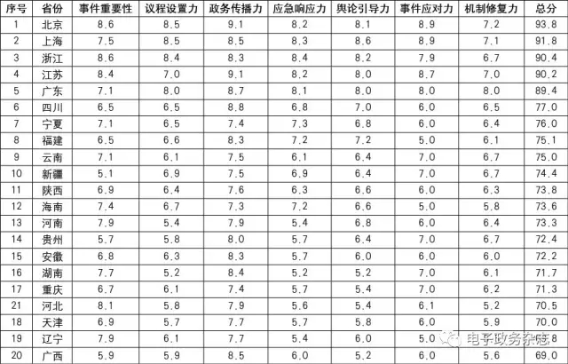 從地方輿情回應(yīng)來看,北京、上海、浙江、江蘇、廣東、四川等省份位列政務(wù)輿情回應(yīng)榜前列。北京政府部門在2016年夏季城市暴雨災(zāi)害中加強信息公開,提升公共服務(wù)能力,有力地穩(wěn)定了人心。浙江在G20峰會前后做了大量的信息公開與輿情回應(yīng)工作,特別是在關(guān)于G20杭州峰會的諸多謠言以及境外媒體片面報道方面,及時澄清事實,化解了負(fù)面輿情,提振了輿論信心和國際影響力(參見表4)。