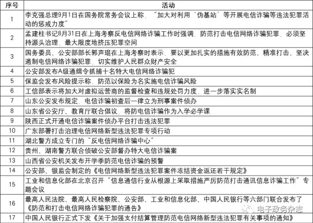 進(jìn)入9月,包括公安部、工信部、中國人民銀行等在內(nèi)的多個國家部委出臺政策重點打擊電信詐騙,全國多地掀起打擊電信詐騙的專項行動。中央政治局委員、中央政法委書記孟建柱9月初在上??疾旆措娦啪W(wǎng)絡(luò)詐騙工作時強調(diào),電信網(wǎng)絡(luò)詐騙犯罪已成為社會公害,要堅決遏制電信網(wǎng)絡(luò)詐騙犯罪高發(fā)勢頭。國務(wù)委員、公安部部長郭聲琨表示,要以更加扎實的措施有效防范、精準(zhǔn)打擊、堅決遏制電信網(wǎng)絡(luò)詐騙犯罪,切實維護(hù)人民群眾財產(chǎn)安全。