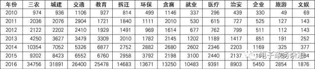 其次,從主題熱度及留言條數(shù)來看,城建(71774條)、交通(52247條)、三農(nóng)(42601條)遙遙領(lǐng)先,當(dāng)然,拆遷(33522條)、教育(30907條)、環(huán)保(27174條)、治安(16182條)、就業(yè)(11361條)、醫(yī)療(10677條)等也是網(wǎng)民關(guān)注的熱點(參見表4)。大部分是與公民切身利益相關(guān)的民生問題,也是公民網(wǎng)絡(luò)問政的重點和熱點。學(xué)者孟天廣利用大數(shù)據(jù)分析方法,指出經(jīng)濟發(fā)展類議題(交通、就業(yè)、企業(yè)和文化娛樂)的關(guān)注度最高,86.9%的網(wǎng)民發(fā)帖涉及該議題,民生福利類議題(環(huán)境保護、醫(yī)療衛(wèi)生、教育和社會治安)次之,63.8%的網(wǎng)民提出相關(guān)訴求,關(guān)注國土建設(shè)類(拆遷征地、市政建設(shè))、農(nóng)村類和貪腐類議題的帖子也分別占三分之一左右。[24]另外,主題熱度及留言條數(shù)也在“地方領(lǐng)導(dǎo)留言板”省級領(lǐng)導(dǎo)各職能領(lǐng)域留言量中得以反映。