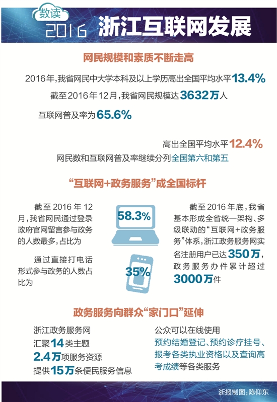 截至2016年底,浙江政務(wù)服務(wù)網(wǎng)實(shí)名注冊(cè)用戶已達(dá)350萬,日均瀏覽量達(dá)到400萬,政務(wù)服務(wù)辦件累計(jì)超過3000萬件。