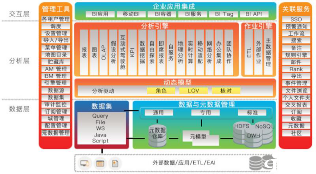 萬(wàn)山數(shù)據(jù)提供的敏捷分析平臺(tái)即是按這樣的應(yīng)用需求設(shè)計(jì),不僅有豐富的功能,還在數(shù)據(jù)安全管理、共享開(kāi)放上下了很多功夫,同時(shí)兼容各種數(shù)據(jù)分析環(huán)節(jié)中的事實(shí)標(biāo)準(zhǔn),比如報(bào)表兼容Jasper、BIRT,圖表兼容Hightcharts、ExtJS,數(shù)據(jù)挖掘完全支持R語(yǔ)言,還能直接集及TOS的ETL任務(wù)調(diào)度……
