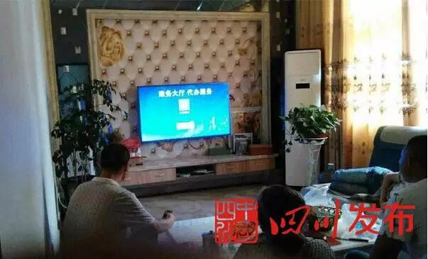 △邛崍群眾在家使用電視機(jī)機(jī)頂盒里的互動(dòng)電視端政府門戶網(wǎng)站預(yù)約上門辦事。