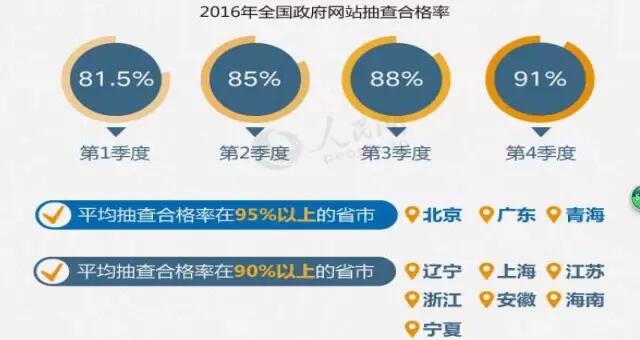 基層網(wǎng)站“建而不管”,網(wǎng)站辦不好,群眾不愛(ài)用,領(lǐng)導(dǎo)不重視, 越來(lái)越邊緣,便會(huì)陷入惡性循環(huán)。為此,繼2015年全國(guó)網(wǎng)站普查之后,2016年,國(guó)辦公開(kāi)辦開(kāi)展了4次季度抽查,初步解決了“不及時(shí)、不準(zhǔn)確、不回應(yīng)、不實(shí)用”等問(wèn)題,政府網(wǎng)站長(zhǎng)期以來(lái)“散、亂、差”等狀況得到改善,政府網(wǎng)站整體合格率從81%升到91%。政府網(wǎng)站總數(shù)減少到三萬(wàn)五千余家。截至2017年3月底,全國(guó)累計(jì)關(guān)停上移無(wú)力維護(hù)的政府網(wǎng)站40951個(gè),整合比例達(dá)48.7%。但是,還有很大的集約空間。