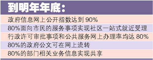 《意見》提出廣州電子政務(wù)建設(shè)目標(biāo),即到明年年底,全市電子政務(wù)建設(shè)和應(yīng)用重點(diǎn)實(shí)現(xiàn)5大突破:在有效提高政府重大公共事務(wù)決策透明度和公眾參與度方面,政府信息網(wǎng)上公開指數(shù)達(dá)到90%;在有效解決市民和企業(yè)辦事難方面,實(shí)現(xiàn)80%面向市民的服務(wù)事項(xiàng)社區(qū)一站式就近受理,行政許可審批事項(xiàng)網(wǎng)上辦理率和公共服務(wù)網(wǎng)上辦理率達(dá)到80%;在有效解決行政運(yùn)作成本高方面,實(shí)現(xiàn)80%的政府公文可在網(wǎng)上流轉(zhuǎn);在有效解決信息孤島的問(wèn)題上,80%的部門相關(guān)業(yè)務(wù)信息實(shí)現(xiàn)共享。