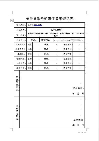 第五條 全縣各鎮(zhèn)(街道)、各部門(mén)單位以機(jī)構(gòu)名義開(kāi)設(shè)政務(wù)新媒體賬號(hào),應(yīng)經(jīng)本單位主要領(lǐng)導(dǎo)批準(zhǔn),并在10個(gè)工作日內(nèi)向縣網(wǎng)宣辦備案(備案登記表附后)。賬號(hào)名稱(chēng)應(yīng)簡(jiǎn)潔、直觀、規(guī)范,頭像應(yīng)鮮明、端莊、文明,按要求完善認(rèn)證信息。