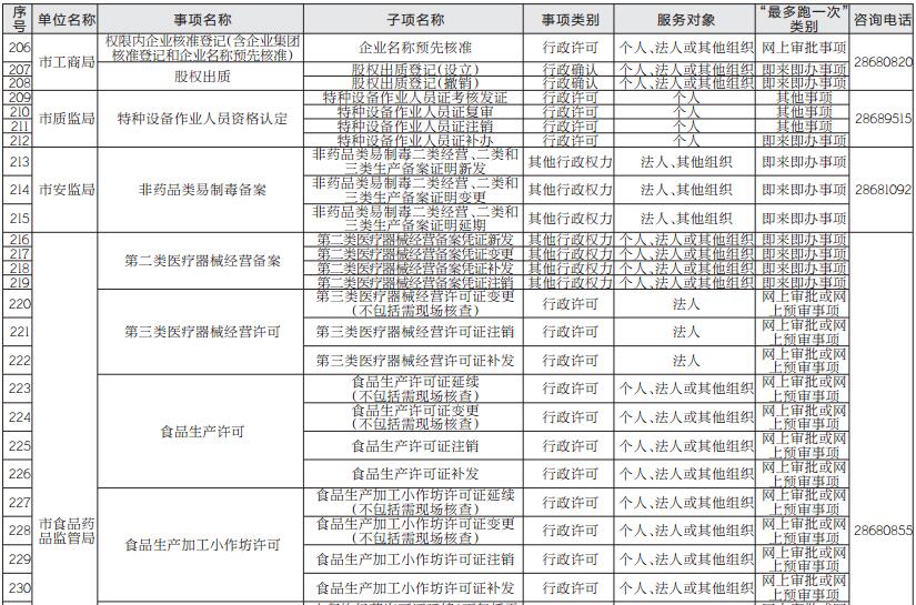 為加快推進(jìn)政府職能轉(zhuǎn)變和深化簡政放權(quán)、放管結(jié)合、優(yōu)化服務(wù)改革,全面貫徹落實(shí)市委,市政府關(guān)于在全市全面推行“最多跑一次”改革的決策部署,經(jīng)市人民政府同意,在全面梳理群眾和企業(yè)到政府辦事有關(guān)事項(xiàng)及流程的基礎(chǔ)上,公布市本級群眾和企業(yè)到政府辦事第一批“最多跑一次”事項(xiàng)(451項(xiàng))