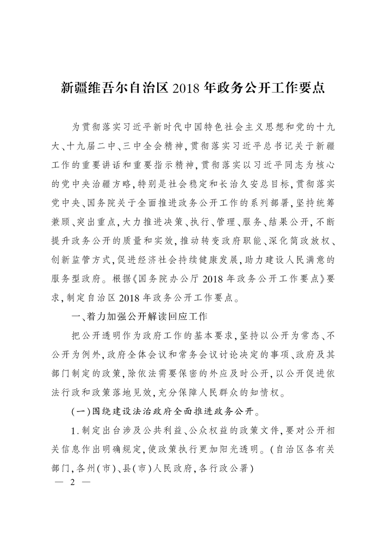 關(guān)于印發(fā)《新疆維吾爾自治區(qū)2018年政務(wù)公開工作要點(diǎn)》的通知
