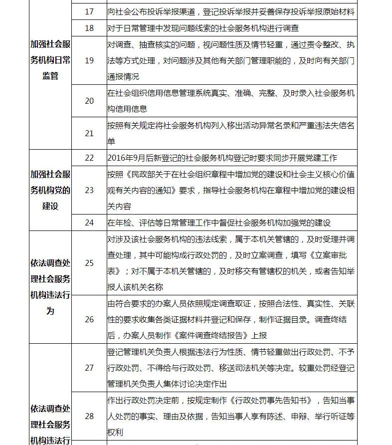 ?。ㄈ┘訌?qiáng)社會(huì)服務(wù)機(jī)構(gòu)執(zhí)法監(jiān)察工作。各級(jí)民政部門要按照《社會(huì)組織登記管理機(jī)關(guān)受理投訴舉報(bào)辦法(試行)》要求,完善社會(huì)服務(wù)機(jī)構(gòu)舉報(bào)投訴受理機(jī)制,對(duì)受理的投訴舉報(bào)分門別類予以調(diào)查和處理。對(duì)于涉嫌違反社會(huì)組織登記管理法規(guī)的問(wèn)題線索,各級(jí)民政部門要依法予以調(diào)查核實(shí),經(jīng)調(diào)查屬實(shí)的,依據(jù)《暫行條例》以及《社會(huì)組織登記管理機(jī)關(guān)行政處罰程序規(guī)定》要求,及時(shí)予以依法查處。對(duì)于未經(jīng)登記的各類非法社會(huì)服務(wù)機(jī)構(gòu),要按照《取締非法民間組織暫行辦法》要求,及時(shí)予以依法取締。各級(jí)民政部門要高度重視社會(huì)服務(wù)機(jī)構(gòu)執(zhí)法監(jiān)察工作,推動(dòng)建立聯(lián)合執(zhí)法機(jī)制,配備專職執(zhí)法人員,完善執(zhí)法程序,加強(qiáng)執(zhí)法培訓(xùn),不斷提升執(zhí)法工作人員的執(zhí)法能力。