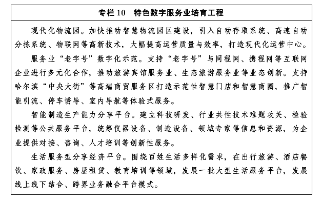 深化龍粵港澳合作。發(fā)揮我省在工業(yè)機器人、航運智能制造、智慧農(nóng)業(yè)、衛(wèi)星應(yīng)用與測繪地理信息等方面技術(shù)優(yōu)勢,推動與廣東技術(shù)、產(chǎn)品、應(yīng)用轉(zhuǎn)移和重大試點項目合作,加快優(yōu)勢領(lǐng)域人才合作、定向委培、技術(shù)成果轉(zhuǎn)化和產(chǎn)業(yè)化進程。依托廣東對外經(jīng)貿(mào)交流平臺和香港國際金融、貿(mào)易服務(wù)大中心優(yōu)勢,協(xié)助我省能源、交通、農(nóng)機、石油鉆探等智能裝備產(chǎn)品走出國門,參與粵港澳大灣區(qū)建設(shè)和面向“一帶一路”國家的貿(mào)易、技術(shù)全方位合作。積極吸納粵港澳大灣區(qū)優(yōu)秀互聯(lián)網(wǎng)企業(yè)、重點園區(qū)在我省成立分支機構(gòu)、產(chǎn)業(yè)園區(qū)等,培育壯大智慧文化、智慧旅游、智慧養(yǎng)老、智慧醫(yī)療等生活性數(shù)字服務(wù)業(yè)。