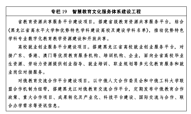 推動中俄教育文化交流合作。整合高校的對俄合作優(yōu)質(zhì)教育資源,聯(lián)合俄羅斯圣彼得堡國立大學(xué)等知名高校,搭建對俄教育交流合作平臺,推動雙方在中俄語言文化、經(jīng)濟管理、衛(wèi)星導(dǎo)航、藝術(shù)等領(lǐng)域的全方位合作互動。促進雙方教育機構(gòu)和管理部門常態(tài)化交流對接,鼓勵通過互派留學(xué)生和訪問學(xué)者、開展合作辦學(xué)等方式,加強高端人才培養(yǎng)、引進和儲備,助力增強“數(shù)字龍江”文化軟實力。