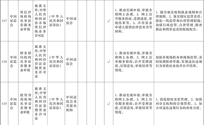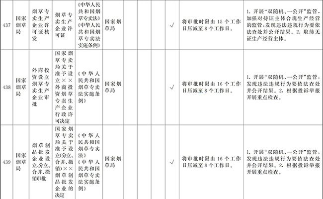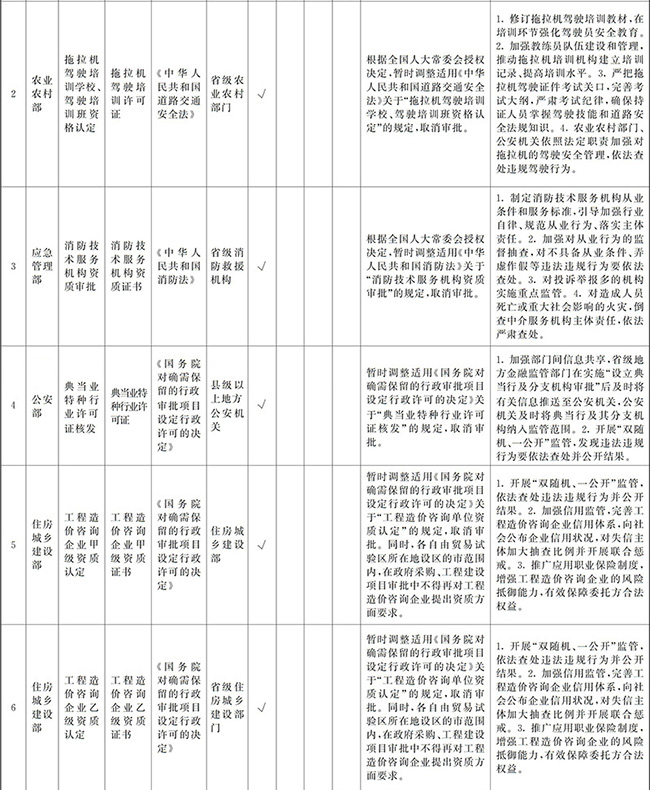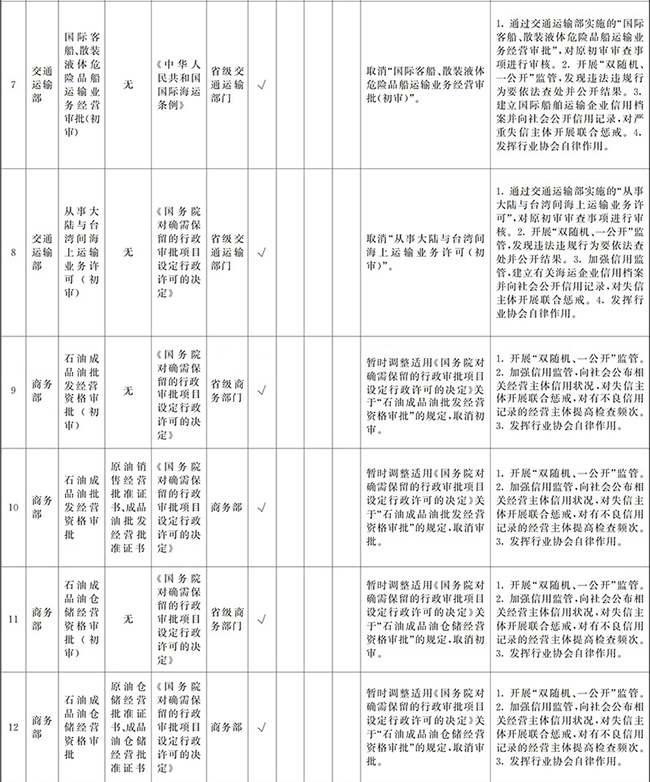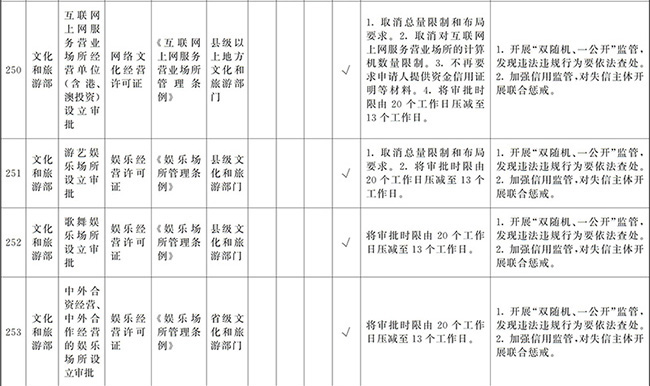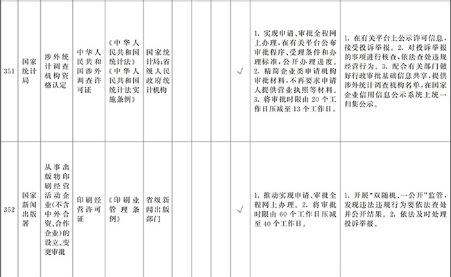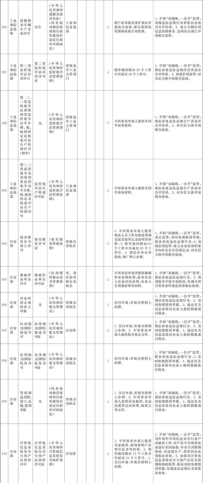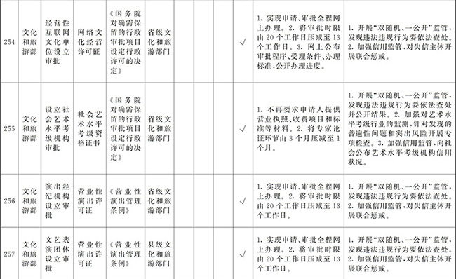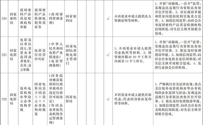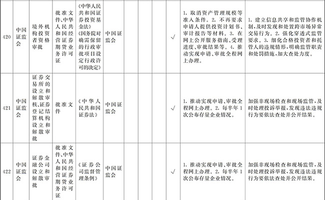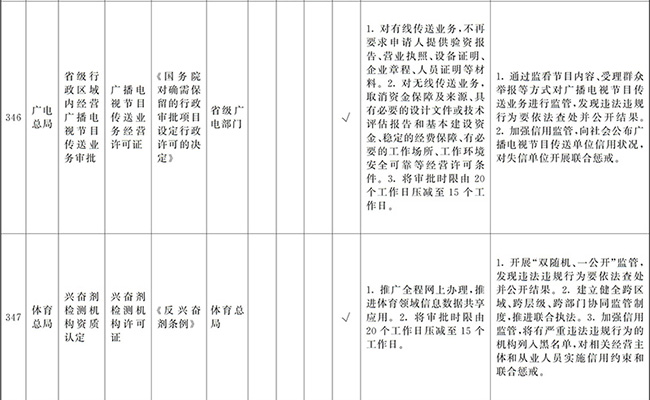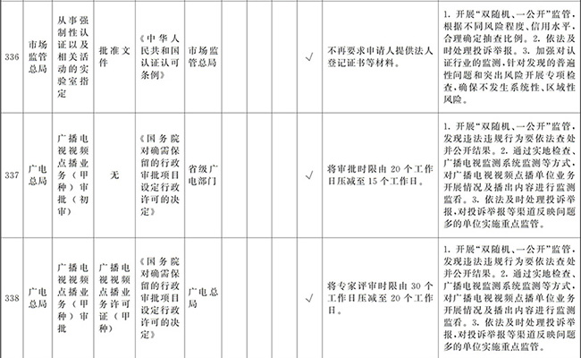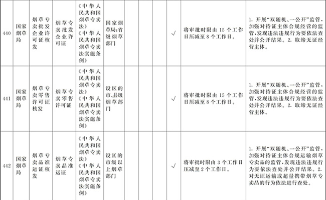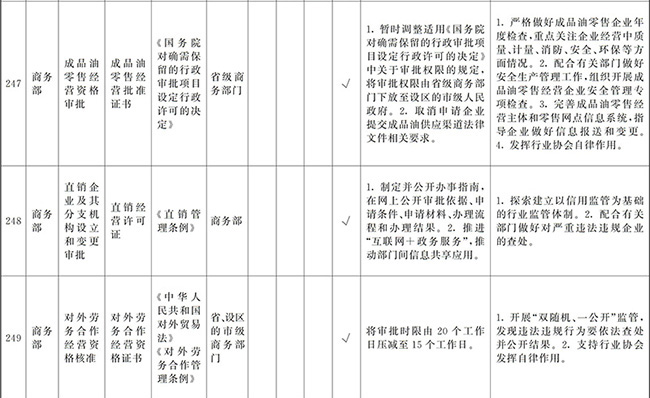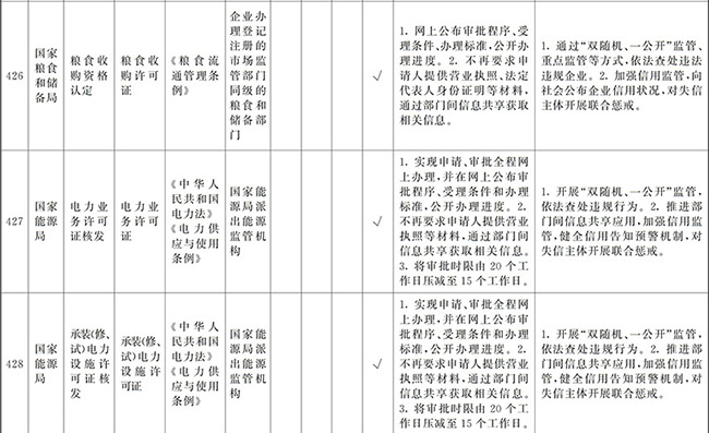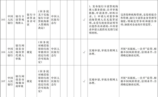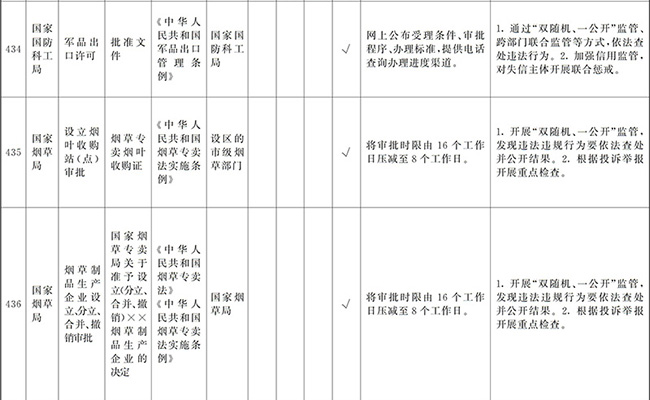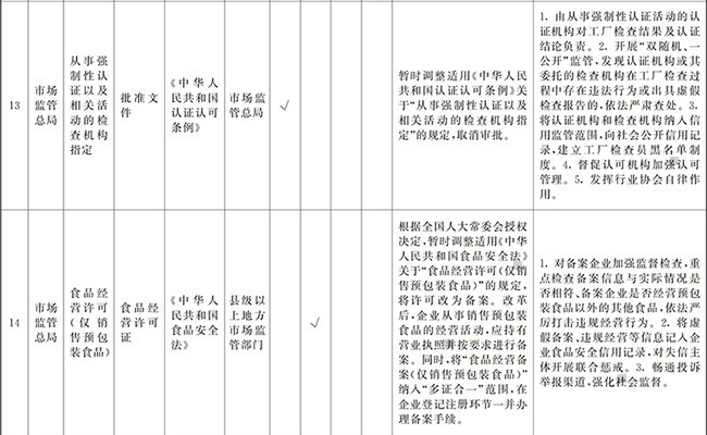 ?。ㄒ唬┲苯尤∠麑徟?。對(duì)設(shè)定必要性已不存在、市場(chǎng)機(jī)制能夠有效調(diào)節(jié)、行業(yè)組織或中介機(jī)構(gòu)能夠有效實(shí)現(xiàn)行業(yè)自律管理、通過事中事后監(jiān)管能夠有效規(guī)范的涉企經(jīng)營(yíng)許可事項(xiàng),直接取消審批。