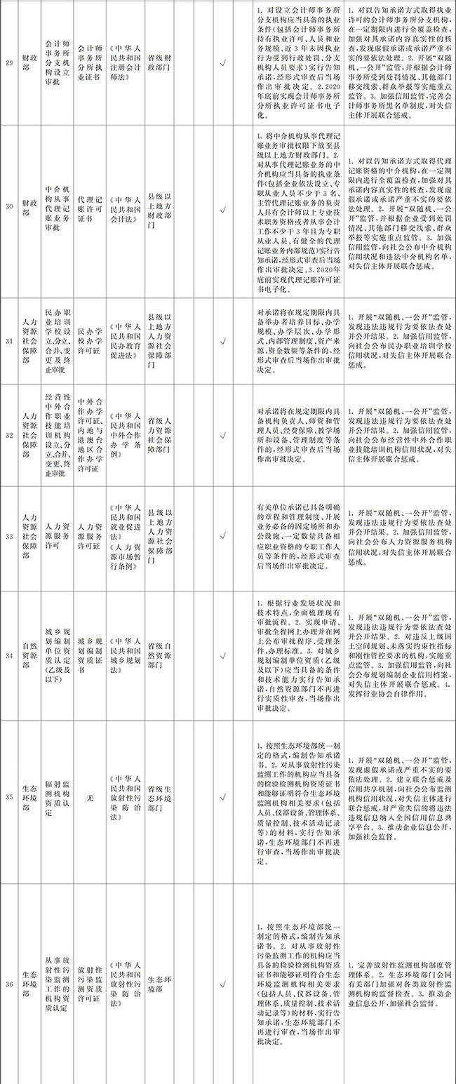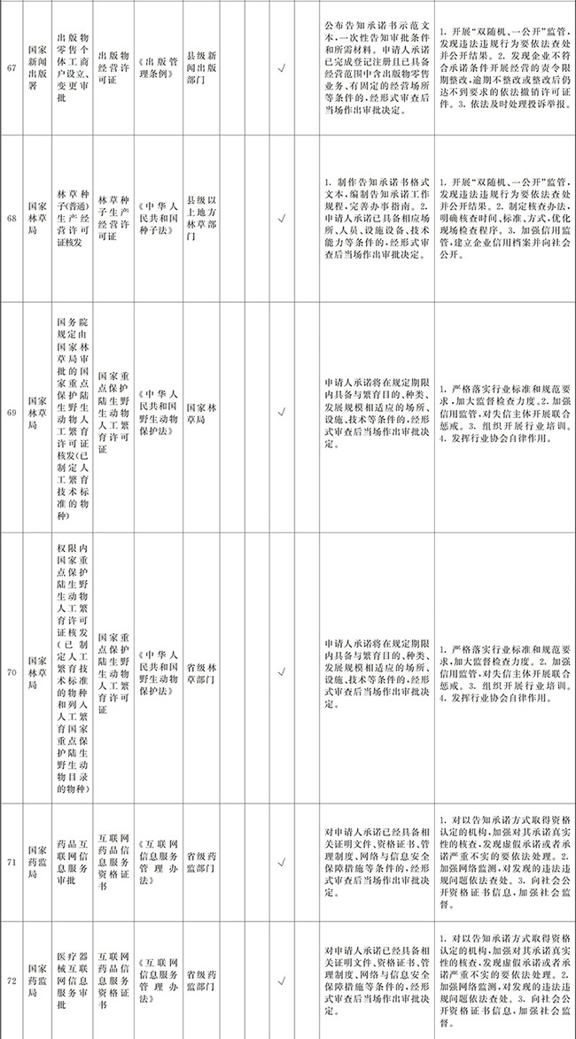 ?。ㄈ?shí)行告知承諾。對(duì)確需保留的涉企經(jīng)營(yíng)許可事項(xiàng),企業(yè)就符合經(jīng)營(yíng)許可條件作出承諾,有關(guān)主管部門通過事中事后監(jiān)管能夠糾正不符合經(jīng)營(yíng)許可條件行為、有效防范風(fēng)險(xiǎn)的,實(shí)行告知承諾。