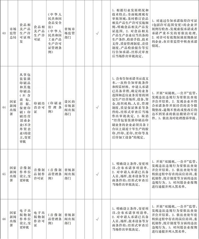 ?。ㄒ唬┙⑶鍐喂芾碇贫?。要按照“證照分離”改革全覆蓋要求,將涉企經(jīng)營(yíng)許可事項(xiàng)全部納入清單管理,逐項(xiàng)列明事項(xiàng)名稱、設(shè)定依據(jù)、審批層級(jí)和部門、改革方式、具體改革舉措、加強(qiáng)事中事后監(jiān)管措施等內(nèi)容。清單要定期調(diào)整更新并向社會(huì)公布,接受社會(huì)監(jiān)督。清單之外不得違規(guī)限制企業(yè)(含個(gè)體工商戶、農(nóng)民專業(yè)合作社,下同)進(jìn)入相關(guān)行業(yè)或領(lǐng)域,企業(yè)取得營(yíng)業(yè)執(zhí)照即可自主開展經(jīng)營(yíng)。