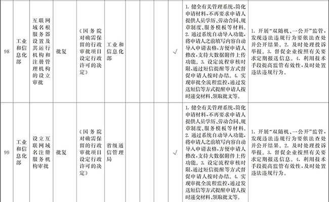 對(duì)審批改為備案的事項(xiàng),原則上要按照“多證合一”的要求在企業(yè)登記注冊(cè)環(huán)節(jié)一并辦理,由市場(chǎng)監(jiān)管部門及時(shí)將備案信息推送至有關(guān)主管部門。確需到有關(guān)主管部門辦理備案的,要簡(jiǎn)化備案要素,強(qiáng)化信息共享,方便企業(yè)辦事。企業(yè)備案后,有關(guān)主管部門要依法實(shí)施有效監(jiān)管。對(duì)未按規(guī)定備案或備案信息不實(shí)的企業(yè),要明確監(jiān)管規(guī)則,依法調(diào)查處理并采取措施予以糾正。