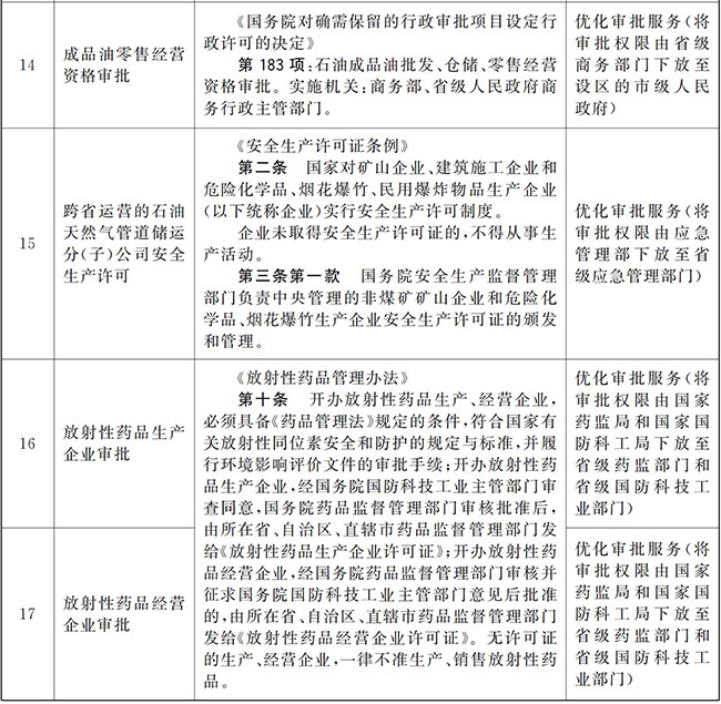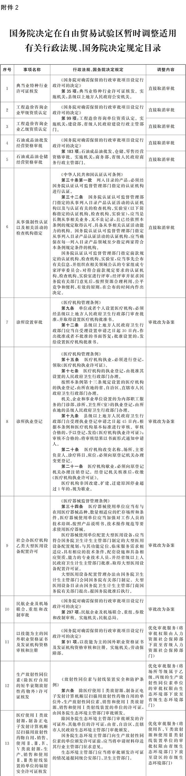 2.國(guó)務(wù)院決定在自由貿(mào)易試驗(yàn)區(qū)暫時(shí)調(diào)整適用有關(guān)行政法規(guī)、國(guó)務(wù)院決定規(guī)定目錄