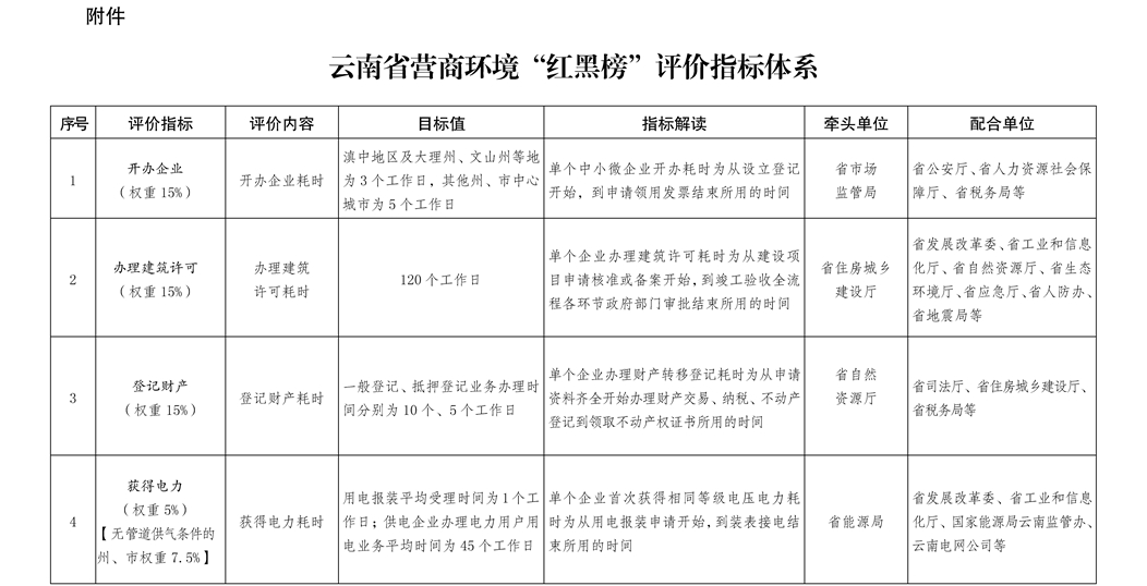 附件:云南省營商環(huán)境“紅黑榜”評(píng)價(jià)指標(biāo)體系