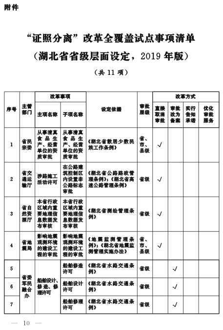 附件:“證照分離”改革全覆蓋試點(diǎn)事項(xiàng)清單(湖北省省級(jí)層面設(shè)定,2019年版)