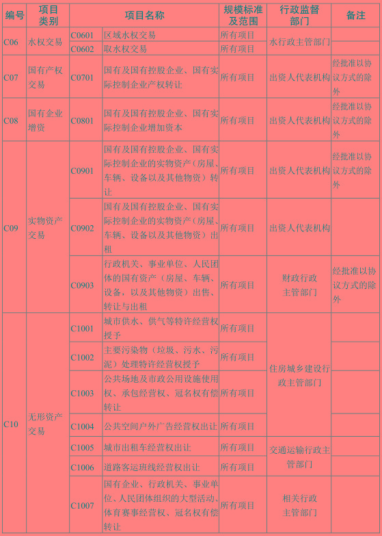 (四)加強公共資源交易目錄管理。制定和發(fā)布《江蘇省公共資源交易目錄》(以下簡稱省交易目錄),將適合以市場化方式配置的自然資源、資產(chǎn)股權、環(huán)境權的出讓轉讓,依法必須招標的工程建設項目招標和機電產(chǎn)品國際招標,以及使用財政性資金以招標方式采購依法制定的政府集中采購目錄以內或者采購限額標準以上的貨物、工程和服務等各類公共資源交易納入統(tǒng)一的公共資源交易平臺。其他可以市場化配置的公共資源,按照“成熟一項、推動一項、進場一項”的原則,及時報省政府審核,補充列入省交易目錄。省本級交易目錄按照省交易目錄執(zhí)行;各設區(qū)市可以根據(jù)省交易目錄,結合當?shù)貙嶋H,制定和發(fā)布本地區(qū)交易目錄。(省政務辦牽頭負責,公共資源交易各行業(yè)行政主管部門參與)
