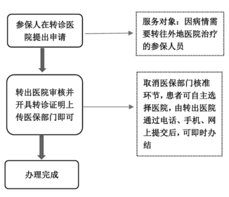 3.簡(jiǎn)化轉(zhuǎn)診轉(zhuǎn)院備案報(bào)銷(xiāo)流程。對(duì)因病情治療需要轉(zhuǎn)往外地就診住院治療的參保人員,直接由當(dāng)?shù)剞D(zhuǎn)出醫(yī)院辦理手續(xù),不再經(jīng)醫(yī)保部門(mén)核準(zhǔn),參保群眾可在轉(zhuǎn)入的省、市所有聯(lián)網(wǎng)結(jié)算醫(yī)院中自主選擇就醫(yī),取消過(guò)去固定1家轉(zhuǎn)診醫(yī)院的要求;同時(shí),需多次轉(zhuǎn)診治療的,辦理一次轉(zhuǎn)診手續(xù)后,一年內(nèi)有效,進(jìn)一步方便患者就醫(yī)報(bào)銷(xiāo)。