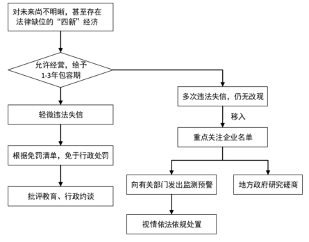 一是完善新興業(yè)態(tài)監(jiān)管模式。對(duì)共享經(jīng)濟(jì)、人工智能、工業(yè)互聯(lián)網(wǎng)等新技術(shù)、新產(chǎn)業(yè)、新業(yè)態(tài)、新模式,量身定制監(jiān)管制度,在守住安全底線(xiàn)的前提下,給予企業(yè)1-3年包容期。二是推行柔性監(jiān)管方式,建立輕微違法行為免罰清單。在包容期內(nèi),以行政指導(dǎo)和服務(wù)為重點(diǎn),通過(guò)法規(guī)宣傳、行政提示、行政建議、行政約談等柔性監(jiān)管方式,積極引導(dǎo)和督促企業(yè)守法誠(chéng)信經(jīng)營(yíng)。允許企業(yè)試錯(cuò),對(duì)非主觀(guān)故意、沒(méi)有造成危害后果的首次輕微違法行為,指導(dǎo)企業(yè)自覺(jué)改正,一般不予行政處罰。三是建立輕微或一般違法失信積累關(guān)注機(jī)制。對(duì)市場(chǎng)主體在短期內(nèi)反復(fù)出現(xiàn)的多次違法失信行為,及時(shí)提醒約談;經(jīng)提醒仍無(wú)改觀(guān)的,移入重點(diǎn)關(guān)注企業(yè)名單,向有關(guān)部門(mén)發(fā)出監(jiān)管風(fēng)險(xiǎn)預(yù)警。四是建立集體會(huì)商制度。相關(guān)部門(mén)牽頭邀請(qǐng)法律專(zhuān)家、“四新”經(jīng)濟(jì)專(zhuān)業(yè)人士、企業(yè)家參與,定期研究磋商“四新”經(jīng)濟(jì)監(jiān)管政策,及時(shí)制定個(gè)性化監(jiān)管方案,為其發(fā)展提供充足的空間。五是劃定監(jiān)管紅線(xiàn),對(duì)P2P網(wǎng)貸、私募股權(quán)融資等領(lǐng)域,以創(chuàng)新之名行侵權(quán)欺詐之實(shí)的偽新興項(xiàng)目,依法嚴(yán)懲,絕不姑息。