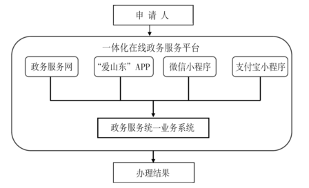 注:再造后,群眾辦理不同事項(xiàng),通過(guò)一體化在線(xiàn)政務(wù)服務(wù)平臺(tái)申辦,辦事入口、結(jié)果反饋出口集中統(tǒng)一。