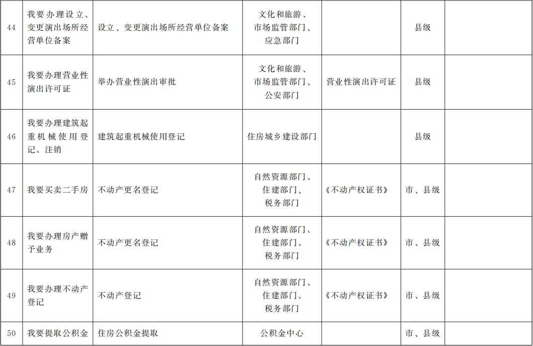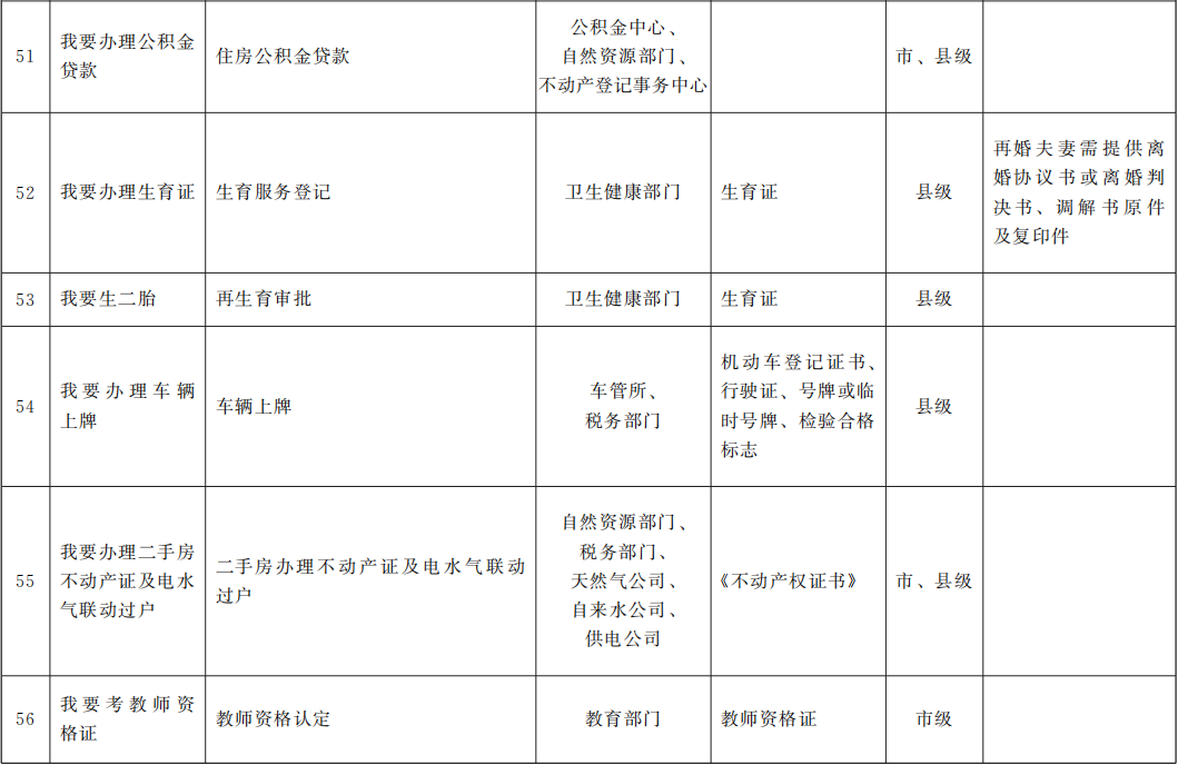 市(州)、縣(市、區(qū))“一件事一次辦”事項參考目錄(95項)