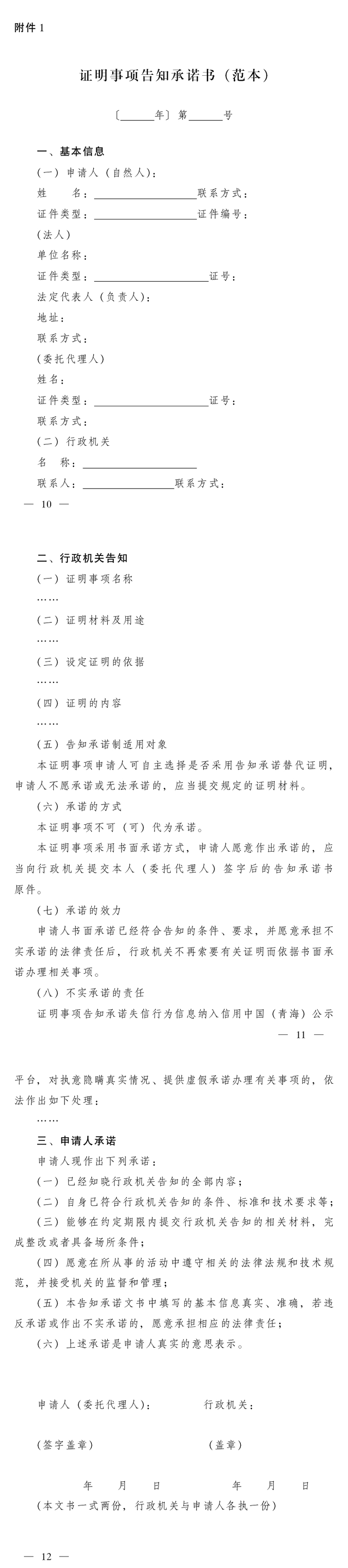 2.青海省推行告知承諾制證明事項目錄(范本)