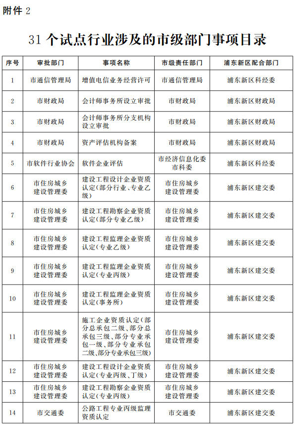 2.31個(gè)試點(diǎn)行業(yè)涉及的市級(jí)部門事項(xiàng)目錄