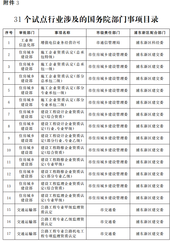 3.31個(gè)試點(diǎn)行業(yè)涉及的國務(wù)院部門事項(xiàng)目錄