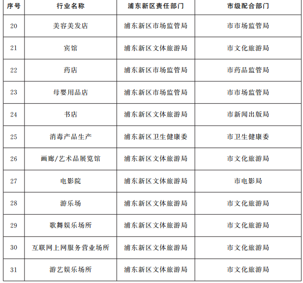 1.建立行業(yè)綜合監(jiān)管制度。建立健全各負(fù)其責(zé)、協(xié)同高效的行業(yè)綜合監(jiān)管制度,研究制定各行業(yè)事中事后監(jiān)管細(xì)則,理順監(jiān)管職責(zé),強(qiáng)化信息共享,加強(qiáng)監(jiān)管協(xié)作,明確市場主體退出機(jī)制。(牽頭單位:浦東新區(qū)政府。配合單位:市有關(guān)部門)