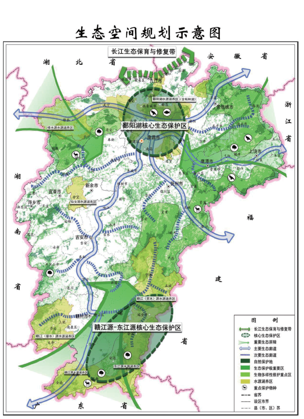 實施山水林田湖草一體化保護(hù)和修復(fù)行動,在贛南山地源頭區(qū)、贛中丘陵區(qū)、贛北平原濱湖區(qū)等特色生態(tài)單元,探索打造不同類型、各具特色的山水林田湖草生命共同體示范區(qū)。開展國土綠化行動,全面深化林長制改革,積極推進(jìn)低產(chǎn)低效林改造、重點防護(hù)林工程和重點區(qū)域森林“四化”四化:綠化、美化、彩化、珍貴化。建設(shè),全面加強(qiáng)濕地、草地保護(hù)修復(fù),推進(jìn)水土流失治理和礦山生態(tài)修復(fù),提升生態(tài)服務(wù)功能和生態(tài)承載力。實施生物多樣性保護(hù)重大工程,完善生物多樣性保護(hù)網(wǎng)絡(luò),全面落實長江流域重點水域十年禁漁,嚴(yán)厲打擊破壞野生動植物資源行為,加強(qiáng)外來物種管控。推行森林河流湖泊休養(yǎng)生息,健全耕地休耕輪作制度,鞏固退耕還林成果,有序開展退圩還湖還濕。在尊重自然屬性前提下,因地制宜開展河道等生態(tài)治理與修復(fù)。加強(qiáng)自然保護(hù)區(qū)能力建設(shè)。