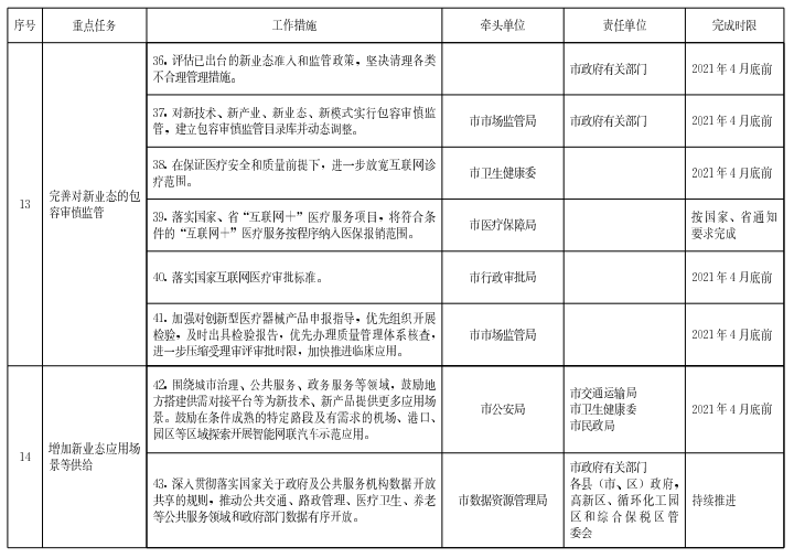 ?。ㄊ┩晟茖?duì)新業(yè)態(tài)的包容審慎監(jiān)管。評(píng)估已出臺(tái)的新業(yè)態(tài)準(zhǔn)入和監(jiān)管政策,堅(jiān)決清理各類不合理管理措施。對(duì)新技術(shù)、新產(chǎn)業(yè)、新業(yè)態(tài)、新模式實(shí)行包容審慎監(jiān)管,建立包容審慎監(jiān)管目錄庫(kù)并動(dòng)態(tài)調(diào)整。在保證醫(yī)療安全和質(zhì)量前提下,進(jìn)一步放寬互聯(lián)網(wǎng)診療范圍。落實(shí)國(guó)家、省“互聯(lián)網(wǎng)十"醫(yī)療服務(wù)項(xiàng)目,符合條件的互聯(lián)網(wǎng)醫(yī)療服務(wù)按程序納入醫(yī)保報(bào)銷范圍。落實(shí)國(guó)家互聯(lián)網(wǎng)醫(yī)療審批標(biāo)準(zhǔn)。加強(qiáng)對(duì)創(chuàng)新型醫(yī)療器械產(chǎn)品申報(bào)指導(dǎo),優(yōu)先組織開(kāi)展檢驗(yàn),及時(shí)出具檢驗(yàn)報(bào)告,優(yōu)先辦理質(zhì)量管理體系核查,進(jìn)一步壓縮受理審評(píng)審批時(shí)限,加快推進(jìn)臨床應(yīng)用。