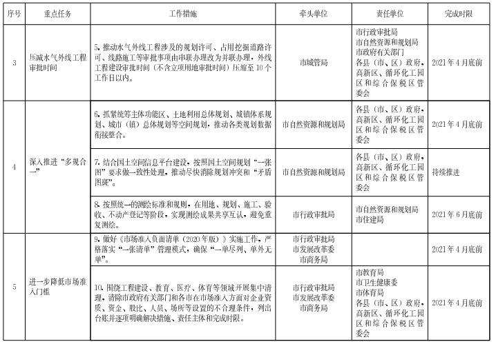 ?。ㄈ簻p水氣外線工程審批時(shí)間。推動(dòng)水氣外線工程涉及的規(guī)劃許可、占用挖掘道路許可、線路施工等審批事項(xiàng)由串聯(lián)辦理改為并聯(lián)辦理,外線工程建設(shè)審批時(shí)間(不含立項(xiàng)用地審批時(shí)間)壓縮至10個(gè)工作日以內(nèi)。