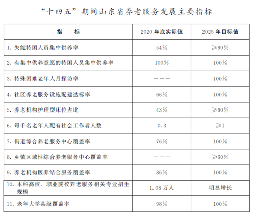 山東省“十四五”養(yǎng)老服務體系規(guī)劃