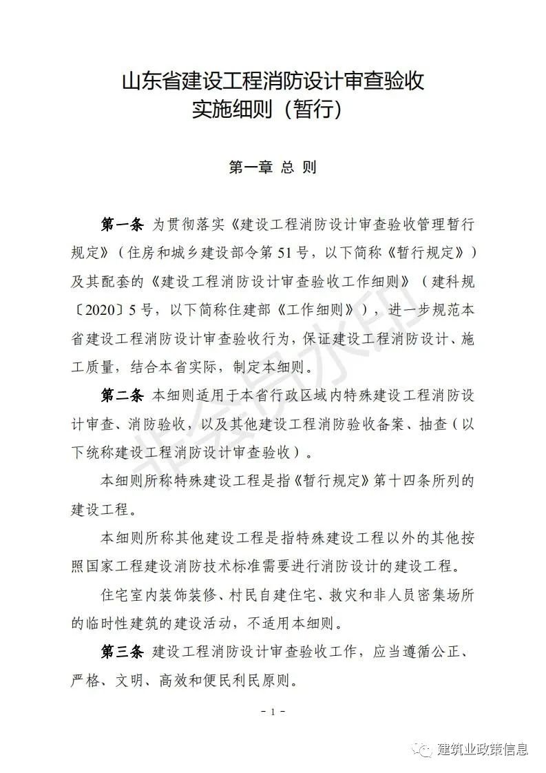 為貫徹落實《中華人民共和國消防法》《建設(shè)工程消防設(shè)計審查驗收管理暫行規(guī)定》(住房和城鄉(xiāng)建設(shè)部令第51號)和《建設(shè)工程消防設(shè)計審查驗收工作細(xì)則》(建科規(guī)〔2020〕5號),進一步規(guī)范我省建設(shè)工程消防設(shè)計審查驗收行為,保證建設(shè)工程消防設(shè)計、施工質(zhì)量,結(jié)合我省實際,省住房城鄉(xiāng)建設(shè)廳研究制訂了《山東省建設(shè)工程消防設(shè)計審查驗收實施細(xì)則(暫行)》。現(xiàn)印發(fā)給你們,請遵照執(zhí)行。以往規(guī)定與本通知不一致的,按本通知執(zhí)行。