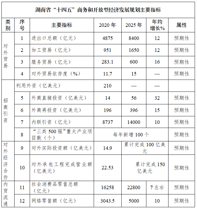 湖南省“十四五”商務(wù)和開放型經(jīng)濟發(fā)展規(guī)劃