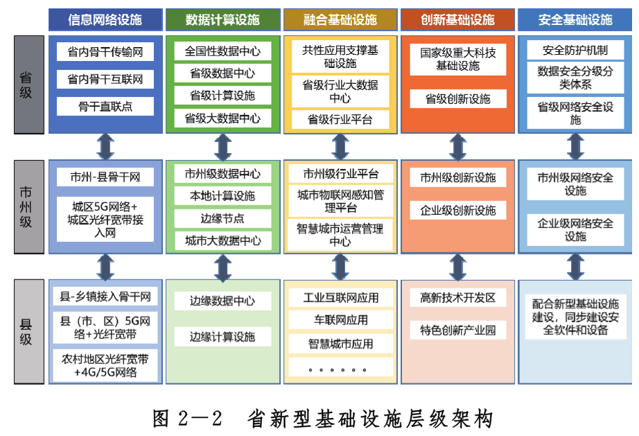 按照省、市州、縣(市、區(qū))分層統(tǒng)籌構(gòu)建信息網(wǎng)絡(luò)設(shè)施、計算存儲設(shè)施、融合基礎(chǔ)設(shè)施、創(chuàng)新基礎(chǔ)設(shè)施和安全基礎(chǔ)設(shè)施。