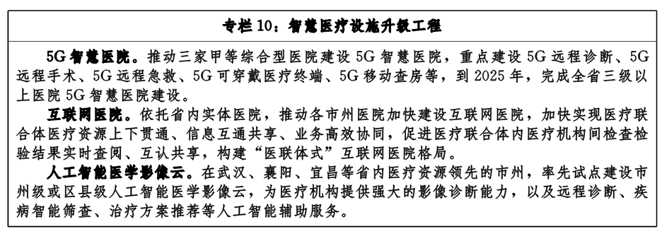 推進(jìn)智慧醫(yī)院建設(shè)。圍繞智慧醫(yī)療、智慧服務(wù)、智慧管理三個方面,加快同濟(jì)、協(xié)和、省人民醫(yī)院等綜合型醫(yī)院智慧醫(yī)院建設(shè)。推動省級、市級人工智能醫(yī)療影像云和人工智能輔助診療平臺建設(shè),提升醫(yī)聯(lián)體內(nèi)成員的影像篩查和輔助診療能力。加快省級醫(yī)療專網(wǎng)、遠(yuǎn)程醫(yī)療服務(wù)平臺和視頻云服務(wù)平臺建設(shè),推動各醫(yī)療機構(gòu)利用互聯(lián)網(wǎng)或?qū)>W(wǎng)開展遠(yuǎn)程醫(yī)療服務(wù)。推動省內(nèi)互聯(lián)網(wǎng)醫(yī)療服務(wù)平臺與多類型、多層次醫(yī)療服務(wù)主體合作,促進(jìn)優(yōu)質(zhì)醫(yī)療資源下沉,提供線上線下相結(jié)合的全流程醫(yī)療服務(wù)。推動建立醫(yī)院綜合運營管理系統(tǒng)、醫(yī)療廢棄物管理系統(tǒng)、智能設(shè)備監(jiān)控系統(tǒng)、智能能源管控系統(tǒng)等,提升醫(yī)院管理智慧化水平。探索利用人工智能技術(shù)對醫(yī)療資源進(jìn)行智能化調(diào)度,提高資源調(diào)度效率。