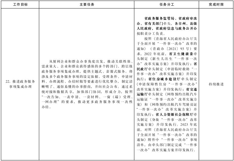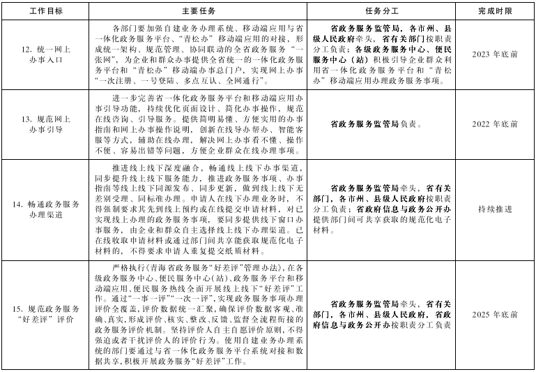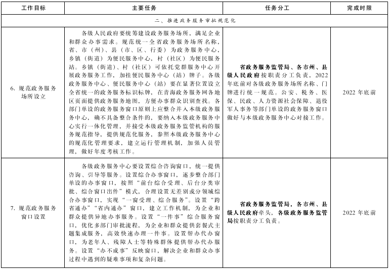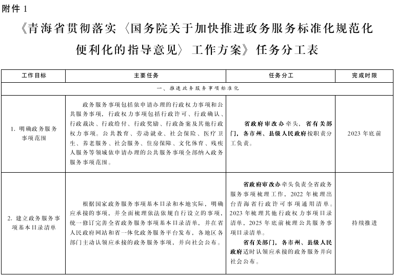 附件:1.《青海省貫徹落實〈國務(wù)院關(guān)于加快推進政務(wù)服務(wù)標準化規(guī)范化便利化的指導(dǎo)意見〉工作方案》任務(wù)分工表
