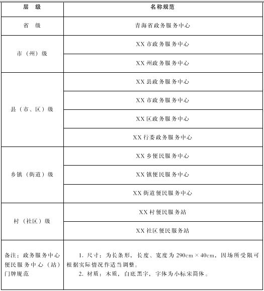 6.規(guī)范政務(wù)服務(wù)場所設(shè)立。各級人民政府要統(tǒng)籌建設(shè)政務(wù)服務(wù)場所,滿足企業(yè)和群眾辦事需求。規(guī)范統(tǒng)一全省政務(wù)服務(wù)場所名稱,省、市(州)、縣(市、區(qū)、行委)為政務(wù)服務(wù)中心,鄉(xiāng)鎮(zhèn)(街道)為便民服務(wù)中心,村(社區(qū))為便民服務(wù)站。鄉(xiāng)鎮(zhèn)(街道)、村(社區(qū))可依托黨群服務(wù)中心開展政務(wù)服務(wù)工作,加掛便民服務(wù)中心(站)牌子。各級政務(wù)服務(wù)中心、便民服務(wù)中心(站)要在顯著位置設(shè)立全省統(tǒng)一的政務(wù)服務(wù)標識標牌,在青海政務(wù)服務(wù)網(wǎng)各地區(qū)頁面提供政務(wù)服務(wù)地圖,方便辦事群眾識別查找。各部門單設(shè)的政務(wù)服務(wù)窗口原則上應(yīng)整合并入本級政務(wù)服務(wù)中心,確不具備整合條件的,要納入本級政務(wù)服務(wù)中心實行一體化管理,并接受本級政務(wù)服務(wù)監(jiān)管機構(gòu)的服務(wù)規(guī)范指導(dǎo),提供規(guī)范化服務(wù),參照本級政務(wù)服務(wù)中心的規(guī)范化管理要求,建立運行管理機制,加強人員管理,做好年度考核工作。(牽頭單位:省政務(wù)服務(wù)監(jiān)管局;責任單位:省有關(guān)部門,各市州、縣級人民政府;完成時限:2022年底前)