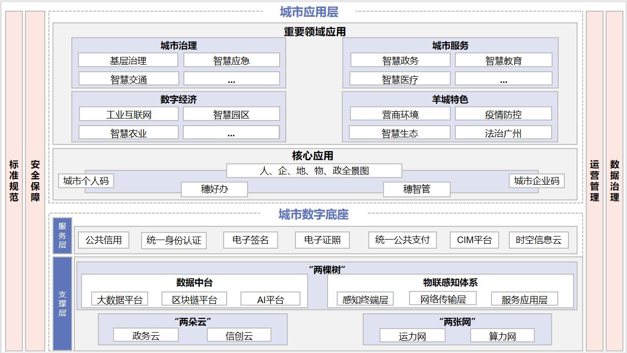 12.“穗智管”城市運(yùn)行管理中樞:廣州市城市運(yùn)行管理核心中樞,指運(yùn)用大數(shù)據(jù)、云計算、區(qū)塊鏈、人工智能、物聯(lián)網(wǎng)等新一代信息技術(shù),以基礎(chǔ)數(shù)據(jù)、應(yīng)急管理、社會輿情、經(jīng)濟(jì)運(yùn)行、公共安全、醫(yī)療衛(wèi)生、規(guī)劃建設(shè)、城市管理、交通運(yùn)行、營商環(huán)境、生態(tài)環(huán)境、民生服務(wù)等城市運(yùn)行管理要素為重點(diǎn),建設(shè)“感知智能”“認(rèn)知智能”“決策智能”的城市發(fā)展新內(nèi)核,打造數(shù)據(jù)全域融合、時空多維呈現(xiàn)、要素智能配置的城市治理新范式。