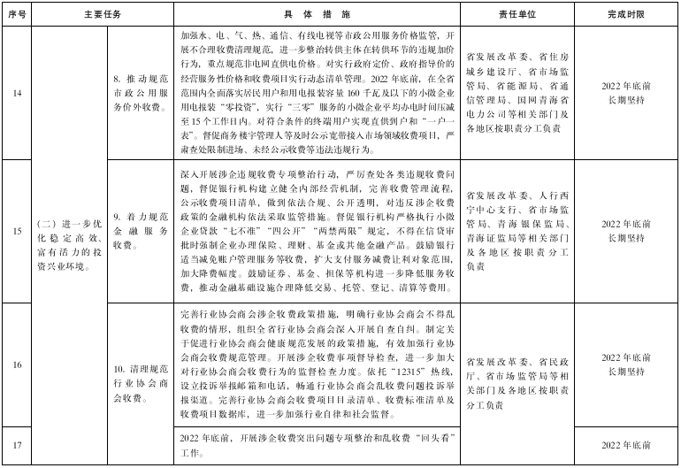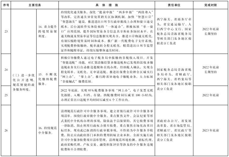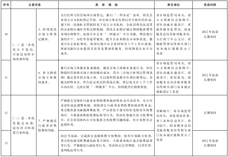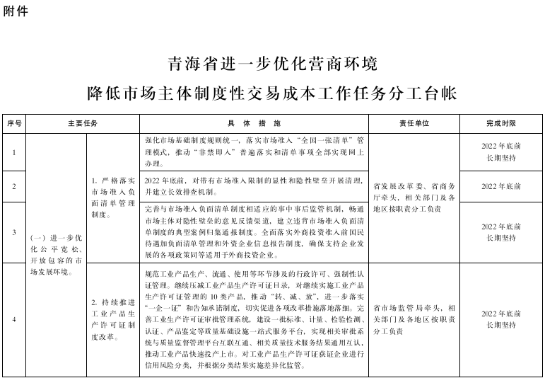 附件:青海省進一步優(yōu)化營商環(huán)境降低市場主體制度性交易成本工作任務分工臺帳