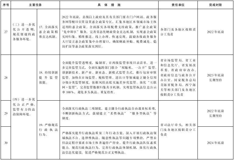 為貫徹落實《國務院辦公廳關于進一步優(yōu)化營商環(huán)境降低市場主體制度性交易成本的意見》(國辦發(fā)〔2022〕30號)精神,進一步優(yōu)化營商環(huán)境,切實降低制度性交易成本,提振市場主體信心,助力市場主體發(fā)展,結(jié)合我省實際,制定本方案。