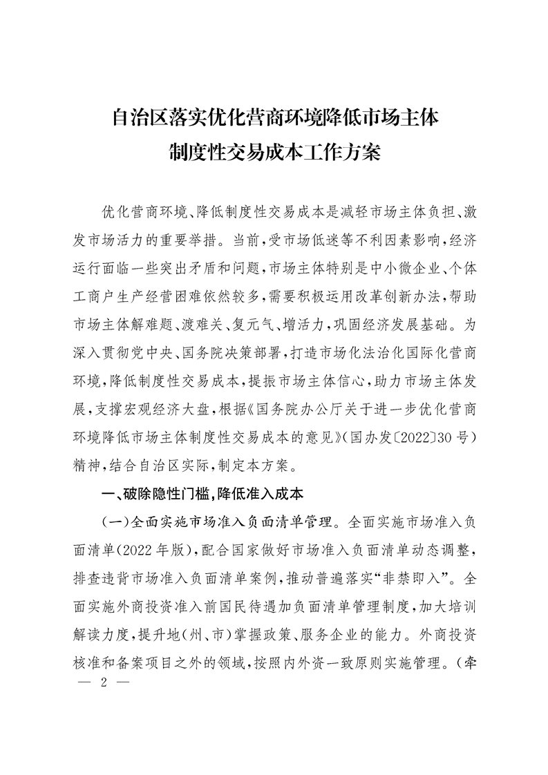 《自治區(qū)落實優(yōu)化營商環(huán)境降低市場主體制度性交易成本工作方案》已經(jīng)自治區(qū)人民政府同意,現(xiàn)轉(zhuǎn)發(fā)給你們,請認真貫徹執(zhí)行。
