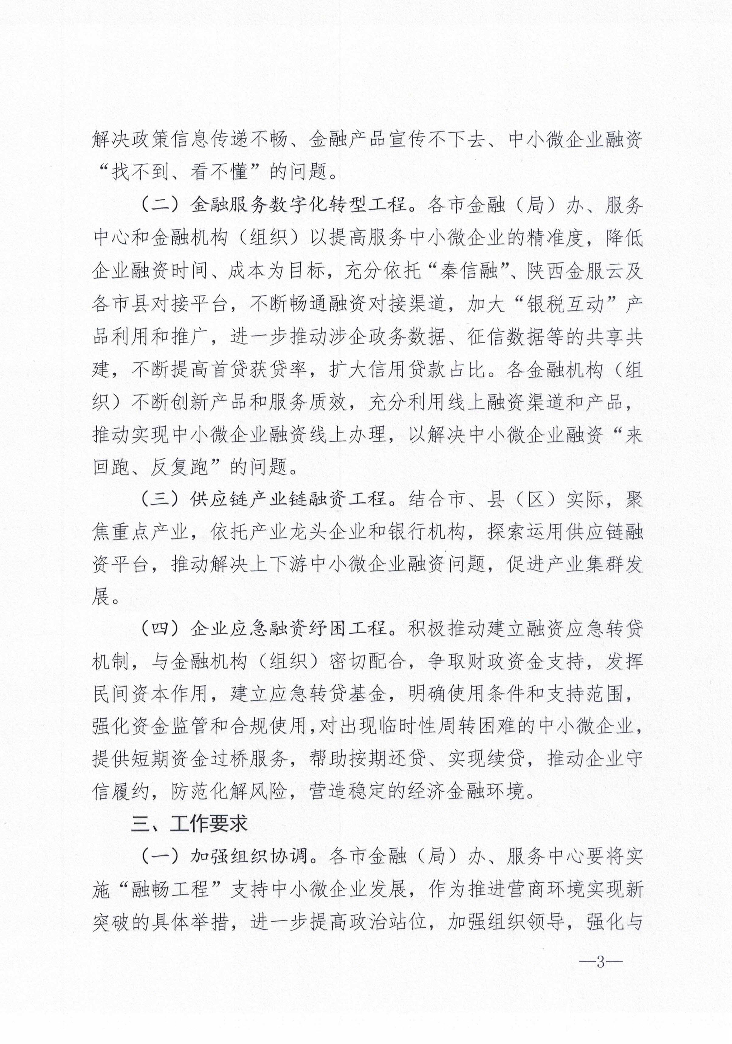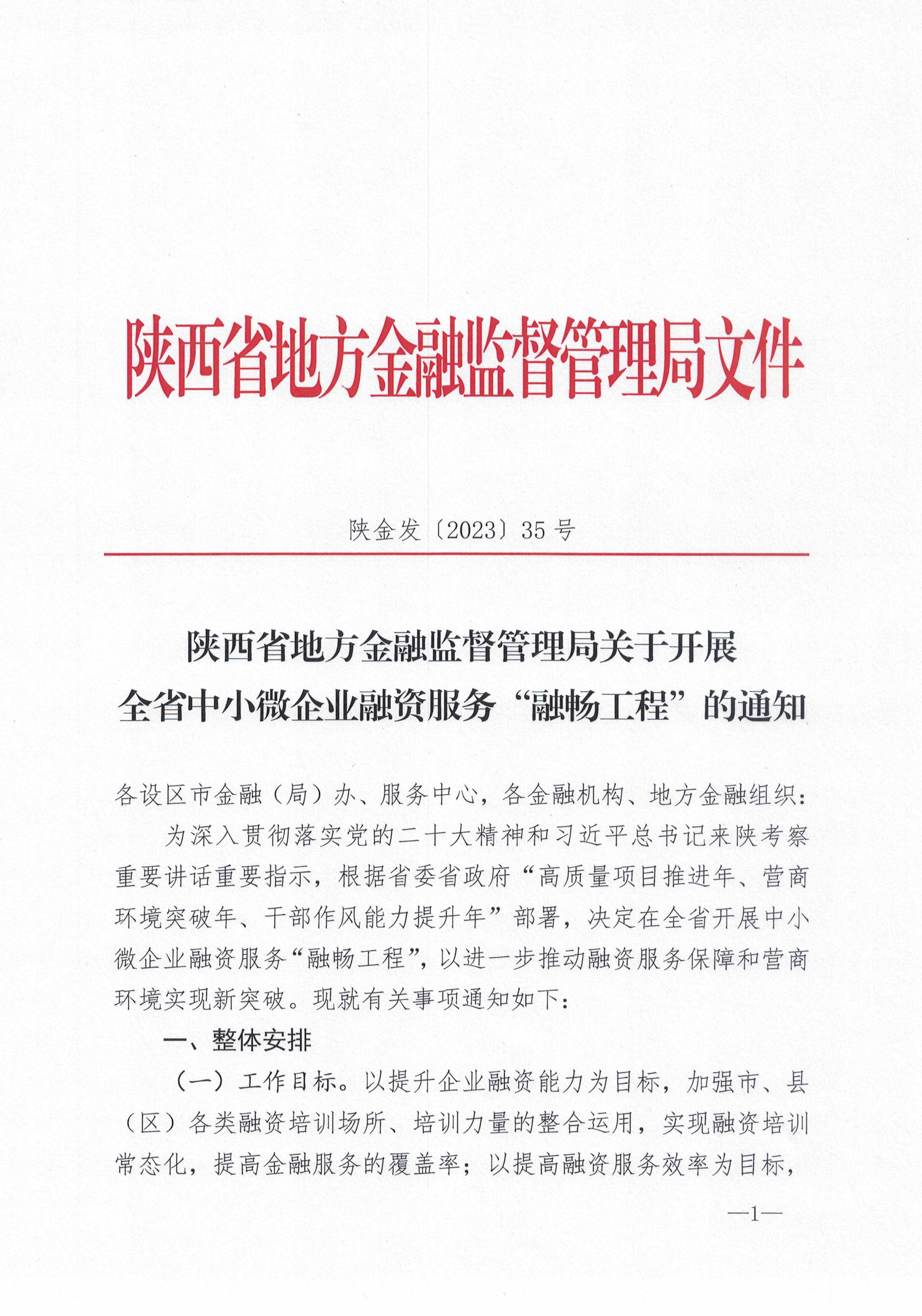 陜西省地方金融監(jiān)督管理局關于開展全省中小微企業(yè)融資服務“融暢工程”的通知