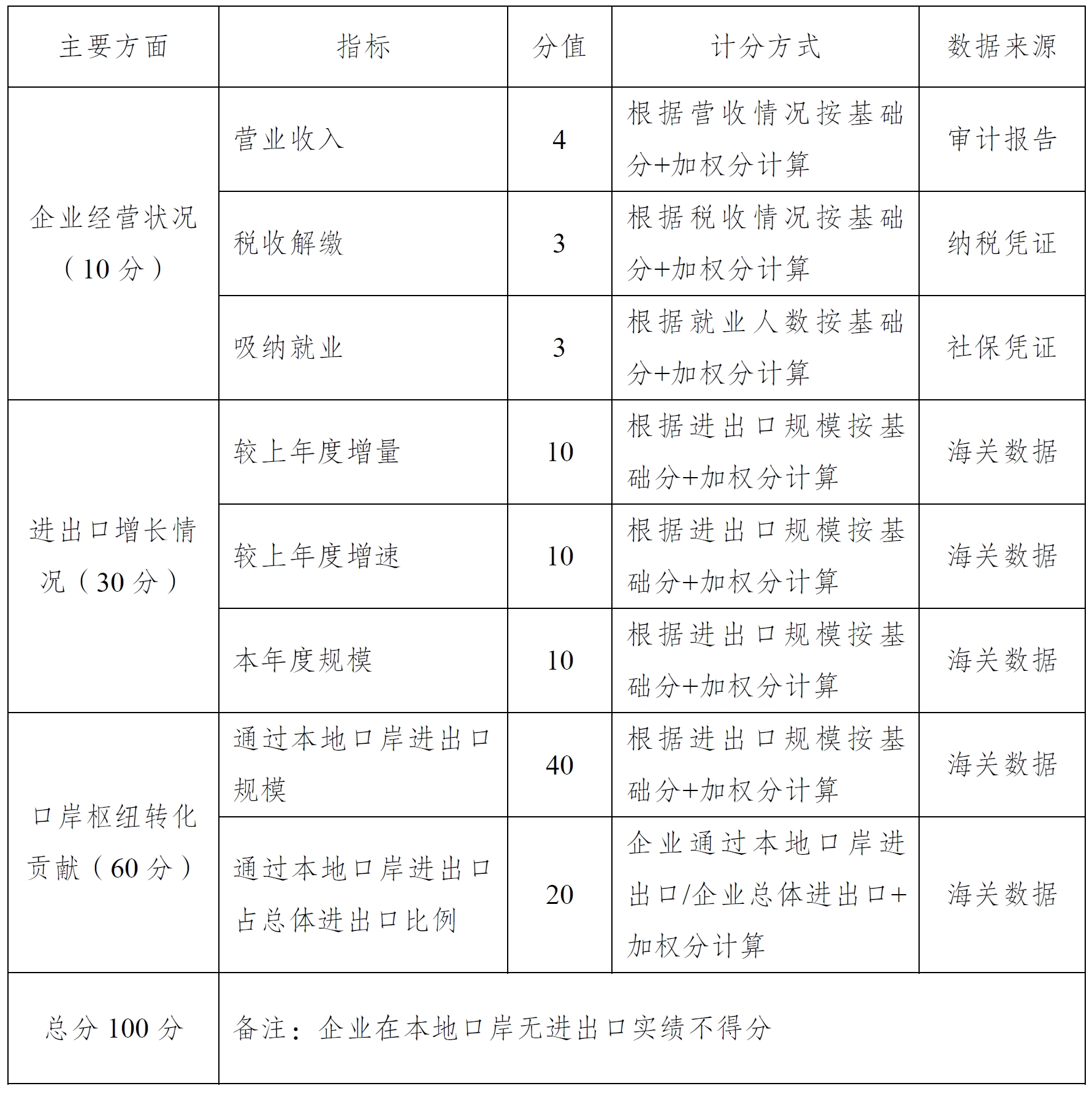 按照企業(yè)用好口岸樞紐資源綜合指標(biāo)進(jìn)行考評(píng),對(duì)考評(píng)合格的企業(yè),根據(jù)單個(gè)企業(yè)考評(píng)分值占所有考評(píng)合格企業(yè)合計(jì)分值比例,在本次資金總規(guī)模中按對(duì)應(yīng)比例給予支持,單個(gè)企業(yè)支持金額不超過500萬元。