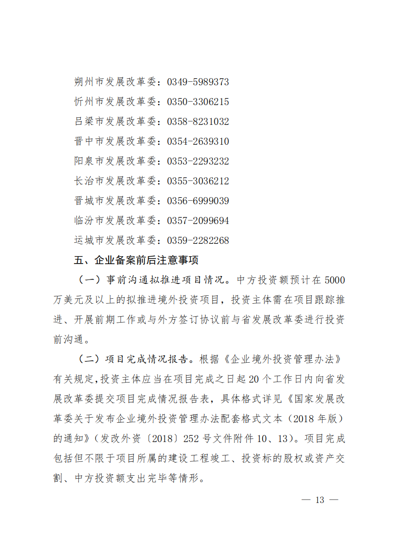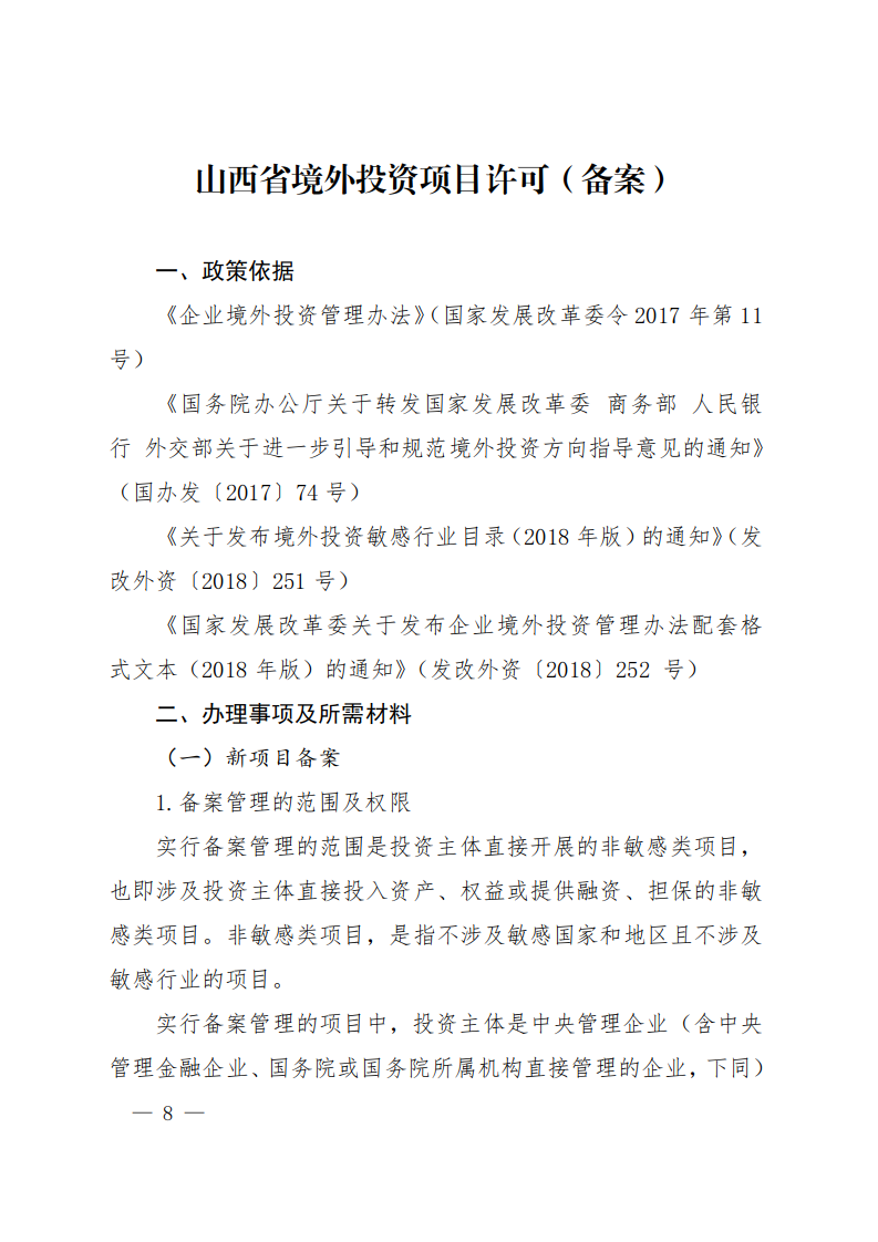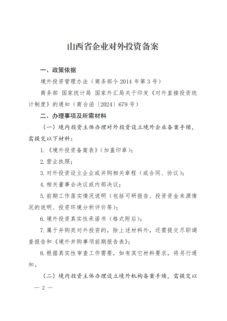 山西省境外投資指引