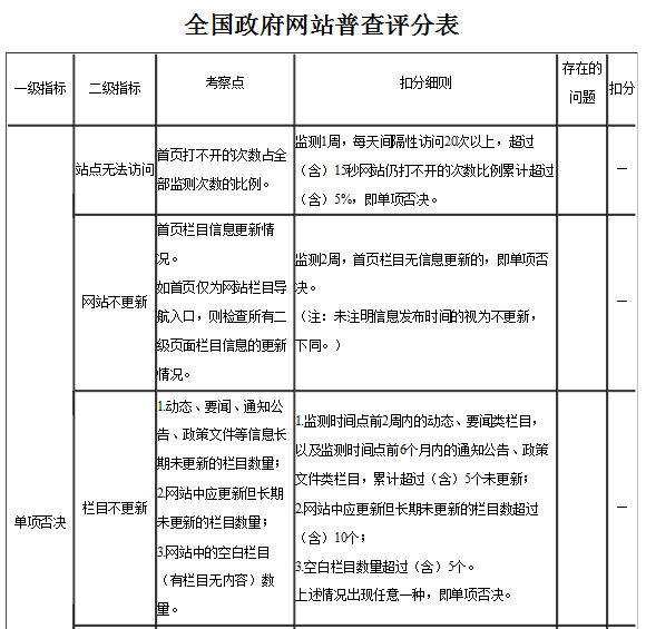 2.全國(guó)政府網(wǎng)站普查評(píng)分表